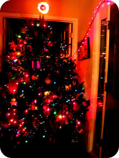 And apparently, I want an excuse not to go in my studio/library during December. That's the yawning black door behind the gorgeous tree. My books are in there. And my wrapping paper. And the thermostat.