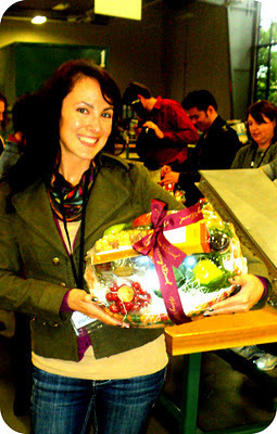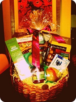 The lovely gift basket from Harry and David, because after traveling since 5am on nothing more than a donut and some coffee, I was starving.