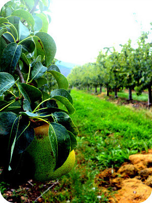 2. Oregon is beautiful. Orchards are beautiful. Pears, dammit, are beautiful. And that piece of fruit, that simple pear, is a complex marvel. There is a man awakened at 2 in the morning who drives 20 miles to the orchard and sets fire to hundreds of smudge pots, just to make sure your pear doesn't die on the vine. There are fences set up to keep elks from tenderly lipping that pear off the tree.