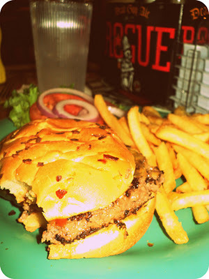 Bond with a fellow Southerner over the fact that our route through the airport was so oddly deserted that we were waiting to hear either zombies or banjos, then go to Rogue Ales Public House for a kickass Kobe burger? CHECK.