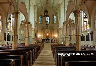 INSIDE MIKVEH ISRAEL: I also heard recently from SM Newsletter subscriber Lorri Mills, who had visited Mikveh Israel, the Sephardic synagogue in Savannah. The third-oldest Jewish congregation in America, and the first in Georgia, it was founded in July of 1735 by Uriah Levy’s great, great grandfather Dr. Samuel Nunez, and a group of other Jews who came there in the summer of 1733, fleeing Portugal and the Spanish Inquisition. The magnificent current Neo-Gothic building was consecrated in 1878.Ms. Mills kindly gave me permission to use these this photo of the inside of that historic building.