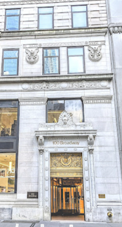 Jefferson Levy, a lawyer by trade, became an extremely successful real estate and stock speculator. Over the years, he rented office space in several buildings in Lower Manhattan, including at 38 Park Row, 30 Pine Street, and 100 Broadway, one block from Wall Street. Today, the latter is the site of the Neo-Renaissance, 26-story American Surety building, one of New York’s earliest skyscrapers, which was completed in 1896. (See recent photo of the entrance below.)