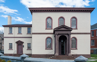 During the time that Touro (below) was inoperative Shearith Israel helped take care of the synagogue, including holding the building’s keys and making it available for occasional funerals, high holiday services, and special occasions. During that time period, too, Shearith Israel became the official trustee for Touro—although as with the case of the original and subsequent trustees, Shearith Israel never owned the building or the Rimonim.