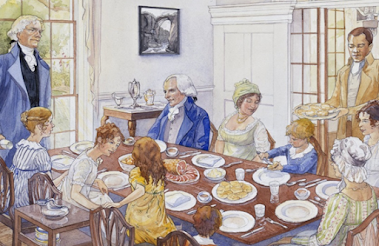 Instead, Jefferson served “the very best of his plantation and the markets offered. In fact, he was noted for his fine dinners. He had lived in the best society of Europe, and he knew what a good dinner was.”