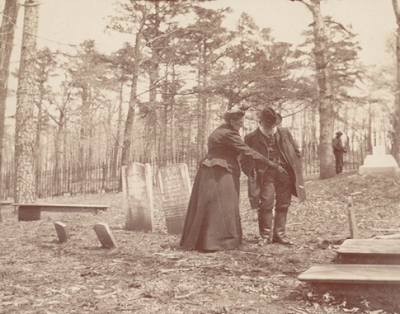 That’s his father, Joseph Randolph Coolidge and an unidentified family member photo below, which I only recently discovered, at the graveyard on the mountaintop in the late 1880s, about the time Archibald Coolidge was trying to buy Monticello.