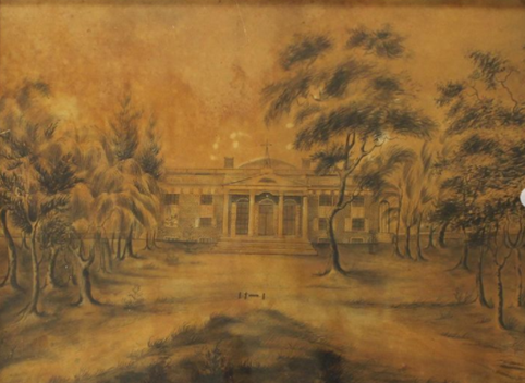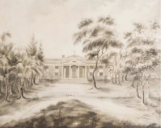 As far as the date of the Woodward drawing, its paper, Emilie said, has an 1834 watermark, which strongly indicates it was made that year. She also said that the 1825 and 1834 drawings present “quite similar” views of the house, except the trees in the later drawing “are larger and fuller than the other. The hand is quite different—details of the house, like the bricks, are more finely rendered in the later picture.”