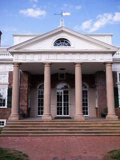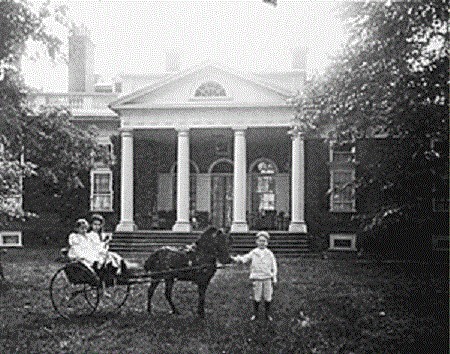 Huntland is on the National Register of Historic Places (http://bit.ly/Huntland), mainly because of what a son of the Gilded Age, Joseph B. Thomas, did after he bought the place in 1911. Thomas, as the National Register designation—written by my colleague, the great architectural historian Maral Kalbian—puts it: “converted and enlarged a relatively modest but stately brick Virginia country dwelling into a Colonial Revival-style masterpiece. At the same time, Thomas… constructed arguably one of the most sophisticated kennels and stables to accommodate horses and hounds associated with point-to-point foxhunting in the region.”