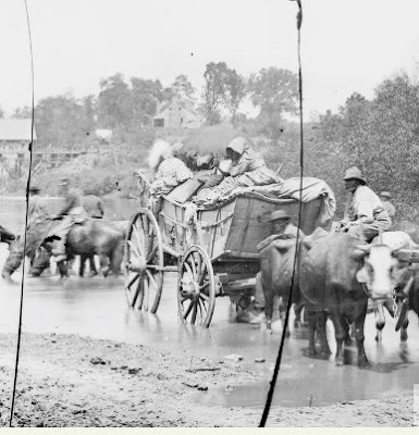 African Americans, fleeing slavery, crossing the Rappahannock River in 1862. (Library of Congress photo)The Union troops did not make a detour to Monticello, heading eventually to Petersburg, and then to take part in the surrender at Appomattox, about sixty miles south of C-ville on April 9.