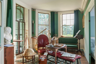 When I checked, I saw that Jefferson did, indeed, have a room (above) that was known as his cabinet. It’s the small-ish office next to his bedchamber on the first floor. You can get a 360-degree panoramic tour of today’s fully furnished cabinet at this page on Monticello’s website: http://bit.ly/MontCabinet