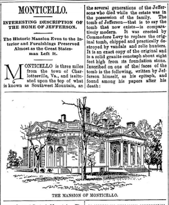 It ends with a final sentence that nicely jibes with all the other evidence I found. To wit: Levy “has been to considerable expense in repairing Jefferson’s mansion and the house and grounds to-day are almost exactly as they were in Jefferson’s time.”