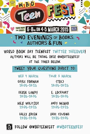 Over the course of the two evenings, the @WDBTeenFest Twitter account will be taken over by eight authors (see schedule above for times). Readers will be able to tweet questions, and chat to the authors directly while they're online.