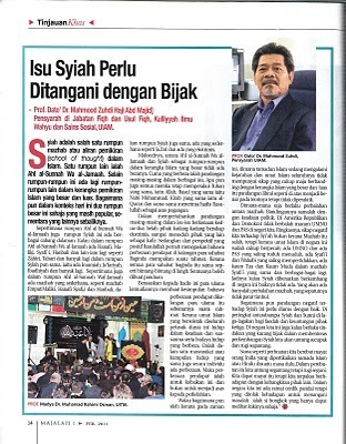Belum lama ini, Datuk Mahmood dalam wawancaranya mengatakan, "Kalau (baca; Andai) Syiah dibenarkan berkembang di negara ini, baiknya tidak ada." Dikatakannya pula, "Bila Syiah dibenarkan, ini akan menimbulkan perpecahan." (Klik foto, baca kenyataan 'berprasangka' Datuk Mahmood dalam Majalah I keluaran Februari 2011 di sebelah)