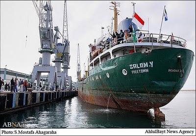 Begini, sehari dua ini sebuah kapal bantuan sepertinya Mavi Marmara baru sahaja melunasi misi untuk menghantar bantuan kemanusiaan ke Gaza. Nama kapal itu MV Salam. Ia disewa oleh aktivis 'Konvoi Asia Untuk Gaza' dengan macam-macam barangan bernilai dua juta dolar US. Tentu kita membayangkan bantuan tersebut terdiri dari makanan, ubatan, alatan perubatan, khabaranya ada 4 buah ambulan, dan bertan-tan susu bayi. Pada mulanya rombongan ini dihalang selama 6 jam di lapangan terbang Al-Arish. Kerajaan Mesir yang mesra Zionis akhirnya tunduk dengan kenekadan mereka lalu mengizinkan sebahagian aktivis untuk masuk melalui pintu Rafah, kecuali aktivis dari Iran. Ya lah, mana mungkin Mesir memberi laluan kepada aktivis Iran masuk ke Gaza!