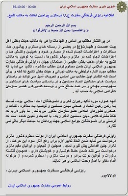 Sebagai satu himbauan blog ini ada menyiarkan perihal Konsulat Kebudayaan Republik Islam Iran di Kuala Lumpur yang menegur kerajaan kita dalam satu kenyataan: