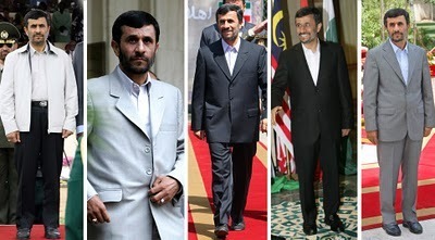 Ikon saya, Dr Ahmadinejad dari Iran lazim mengenakan seluar warna gelap, fesyen gaya 'minimalist aesthetica' dengan kolar terbuka, tentu trademark beliau jaket khaki berharga 30 dolar, sejenis windbreaker buatan Cina yang dibeli dari bazar Selatan Tehran. Foto keempat ialah ketika beliau berada di Malaysia untuk menemui Tun Dr Mahathir. Kenapa beliau tidak mengenakan tali leher? BBC memandai-mandai sendiri di sini.