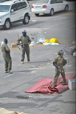 Ketika tentera Saudi masuk menabrak Manama, Bahrain, seorang wartawan New York Times yang terperangkap dalam huru-hara menggawangkan pasport Amerika miliknya supaya dia tidak ditembak oleh salah seorang pembunuh upahan (tentera) tersebut. Tindakan tersebut berhasil dan salah seorang pembunuh tepat itu membalas, "We're not after you. We're after Shia."