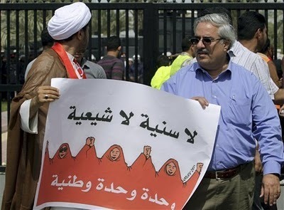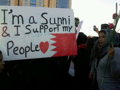 Kebangkitan di negara-negara Arab termasuk Bahrain adalah kebangkitan menuntut hak tanpa mengira mazhab, dan agama. Wanita Sunni ikut menggerakkan protes terhadap penindasan Hamad Khalifa terhadap masyarakat Syiah Bahrain.