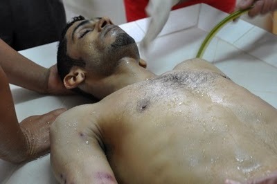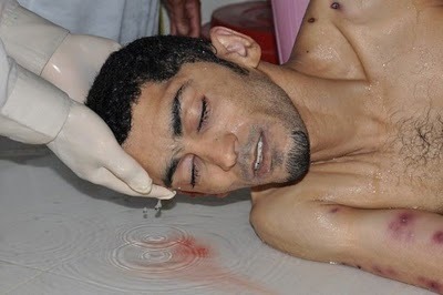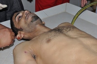 Qaradhawi mahu bukti lebih tentang apa yang berlaku di Manama, Bahrain. Qaradhawi penerima anugerah dari kerajaan Saudi ini (King Faisal International Prize for Islamic Studies – 1994) tidak nampak apa yang Saudi lakukan adalah satu pembunuhan. Mungkin beliau patut ditunjukkan dengan foto-foto Ahmad Farhan seperti di bawah:
