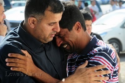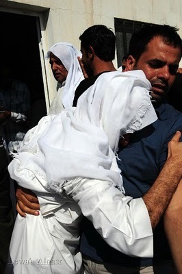 * Ucapan puteri Abdul al Rasul Hassan Ali al Hujairi, Fatimah (qari yang digilis dan digelek jip tentera elit) di majlis pengkebumian bapanya; klik sini (ada subtitle).