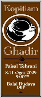 Antara 8 hingga 11 Ogos ini Mohd Faizal Musa atau lebih dikenali sebagai Faisal Tehrani (penerima Anugerah Seni Negara 2006 dari kerajaan Malaysia) akan kembali mengarah sebuah pementasan yang berjudul Kopitiam Ghadir. Pencapaian Faisal dalam bidang drama, tidak dapat dinafikan memandangkan beliau pernah menghasilkan beberapa naskah bermutu seperti Rintih Chicago (memenangi Hadiah Sastera Perdana Malaysia 1996/97) Angin Madinah (memenangi Hadiah Sastera Berunsur Islam anjuran Yayasan Pelajaran I