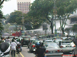 Foto: 7 Mac 2009: Orang ramai ditembak dengan meriam air ketika berusaha mencari perlindungan di dalam Masjid Negara.