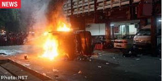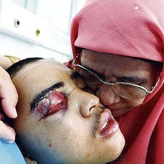 Seorang pembantu gerai minuman di pekarangan Stadium Sultan Muhammed IV, di Kota Bharu, buta mata kanannya terkena serpihan objek dipercayai daripada tembakan gas pemedih mata ketika rusuhan penonton selepas perlawanan Piala FA, malam Selasa lalu. Penuntut Institut Latihan Perindustrian (ILP) Kota Bharu, Mohammad Huzaifah Mohd Noor, 18, dikatakan terkena objek berkenaan ketika sedang me