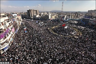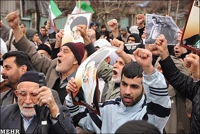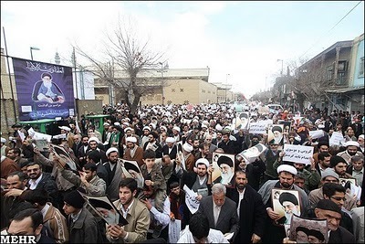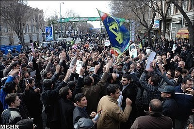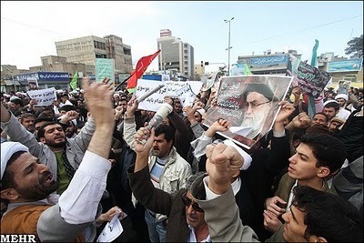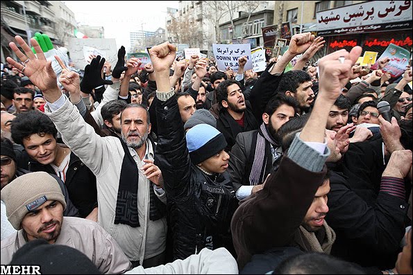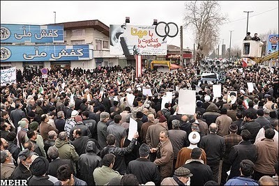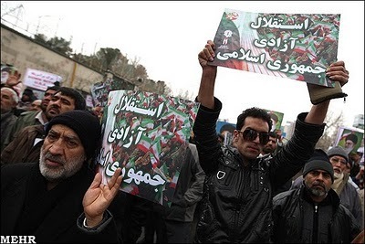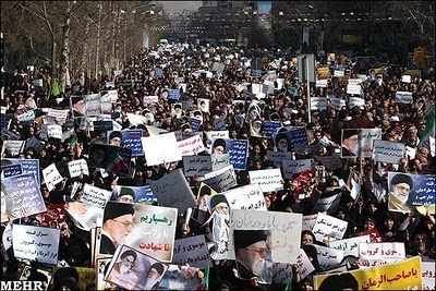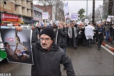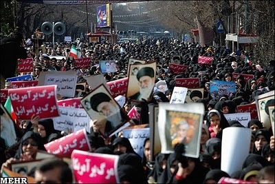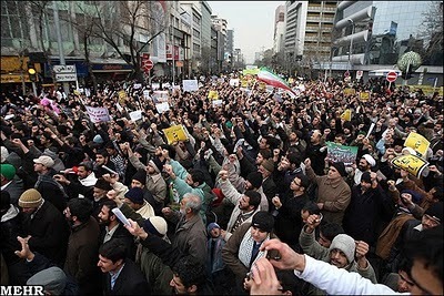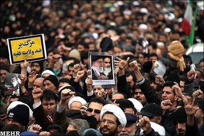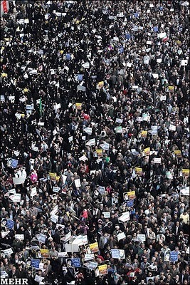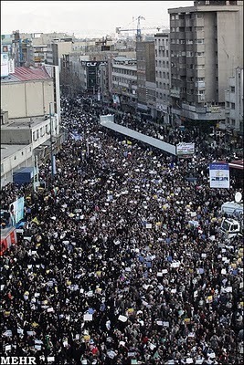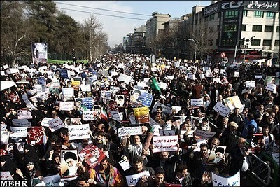 Bagi menjawab laporan media Barat tersebut, dan kegirangan mak cik Clinton bahawa 'revolusi Mesir sudah merebak ke Iran', 20 juta rakyat Iran muncul di jalan-jalan raya seluruh kota di Iran (bukan Tehran sahaja) untuk membantah tindakan khianat segelintir sekularis dan penghasut di Iran yang mahu menjual agama dan negara kepada Amerika Syarikat.