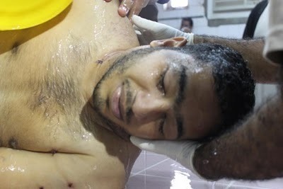 syahid dibunuh pihak berkuasa Bahrain tersenyum ketika dimandikan.