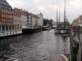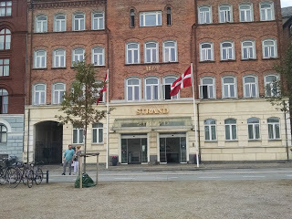 Our hotel--a lovely place.Our flight from Reykjavic took about three hours. Through the train from the airport left us only a short distance from our hotel, we got a bit lost and walked in circles for a while. That's what happens when you're in a city where you don't speak the language and Google maps is only confusing you. :-) (A hint for future travelers: everyone in Copenhagen seems to speak English and the names of streets are on the sides of buildings.) A kind taxi driver gave us directions and we finally found our destination: the Copenhagen Strand Hotel, only a few blocks from the scenic Nyhavn area. The entire area is lined with restaurants and bars and crowded with sightseers and tourists.