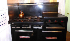 This is the antique stove and oven! It was so much fun to figure out how to work it! Quite the adventure. I'm still not quite sure how we didn't blow ourselves up. But it works well once you're used to it. We made bacon and blueberry pancakes for breakfast and I roasted a chicken for dinner! MMM Mmm, Good.