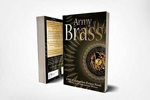 When the mad conqueror haunting Elaina's dreams invades her adopted homeland, the real nightmare becomes what she's willing to do to stop him.The dreaded Hunter Baron has landed on the shores of Mailderet, but Master Tinkerer Elaina Gable believes she has the solution. Giant automatons sit rusting in the valley, waiting for someone with the drive and ingenuity to bring them to life. But the king, swayed by the destruction his ancestors wrought centuries before, harbors a deep-seated fear of the machines. Though he will not allow the alliance of Tinkerers and Smiths to complete the work, Elaina resolves to bring the machines back to life in secret—with the help of a famous airship pilot.From the safety of the swamps, a woman with silver skin jealously guards the secrets of the automatons. Though the Silver Woman also wishes the past to remain buried, she must weigh the value of secrecy against the thousands of innocents her hesitation might send to the grave.As they discover the link between the toxic valley and the inner workings of the automatons, Elaina and her allies are drawn into a web of deceit threatening the balance of power across two continents—and proving the truth behind the deadly legends surrounding the Army of Brass.Read Chapter 1 NOW on Steampunk JournalPre-orderyour ebook copy of Army of Brass for $.99 and receive it on Friday, April 27!Plus, Join us on Facebook April 28-29 to meet the writers, participate in giveaways, and more!Speaking of giveaways, we’ve got one going on for the entire blog tour, so between April 13-May 13, enter to win ebooks from our writers.Collaborative Writing Challenge: www.collaborativewritingchallenge.comEmail: cwc@collaborativewritingchallenge.comLaunch contact: PhoebeDarqueling@gmail.comSteampunk, steam punk, book, novel, release, launch, collaboration, collaborative, airship, captain, pilot, tinkerer, science, science fiction, fantasy, crossover, mashup, gaslamp, brass, automaton, conspiracy, king, lord, Army of Brass