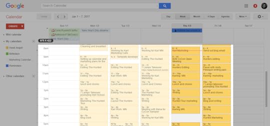 Hello, Lovelies!How was the first week of New Year's resolutions? Everyone charging along, or is anyone else feeling a little overwhelmed by it, like me?I planned for over a month and was sure I had gotten it right this year. Lol. I started early on my Resolutions, and so technically I am more than a week in, but this week I tried something a little different than I have been doing the last few "practice weeks" to try and really get stuff done.I scheduled all my tasks in Google Calendar. A nice reminder to switch tasks, right?This week was Bananas! I am totally channeling Angela from the office today.I think this is the point where a lot of people give up on their resolutions. (Not week one, but the point where they start feeling overwhelmed.)Giving up isn't the answer to this problem though. The answer is to look at what I can do to tweak my goals.See, I have so much on my plate right now that in order for me to work on everything each day, I was scheduling 1 hour blocks of "work time." Which, when you have 12 projects you need to be working on, is not very practical.