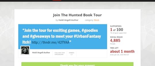 Woohoo!I am super excited! I know, The Hunted was supposed to come out months ago. But it is official, now, and promoting the book tour has begun! I would love your support on Thunderclap to announce the tour release.