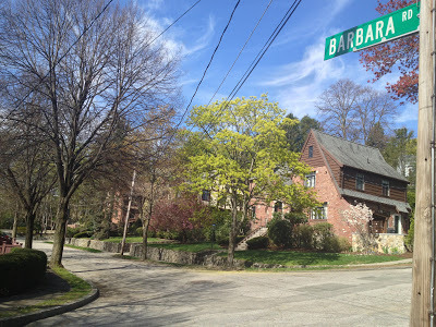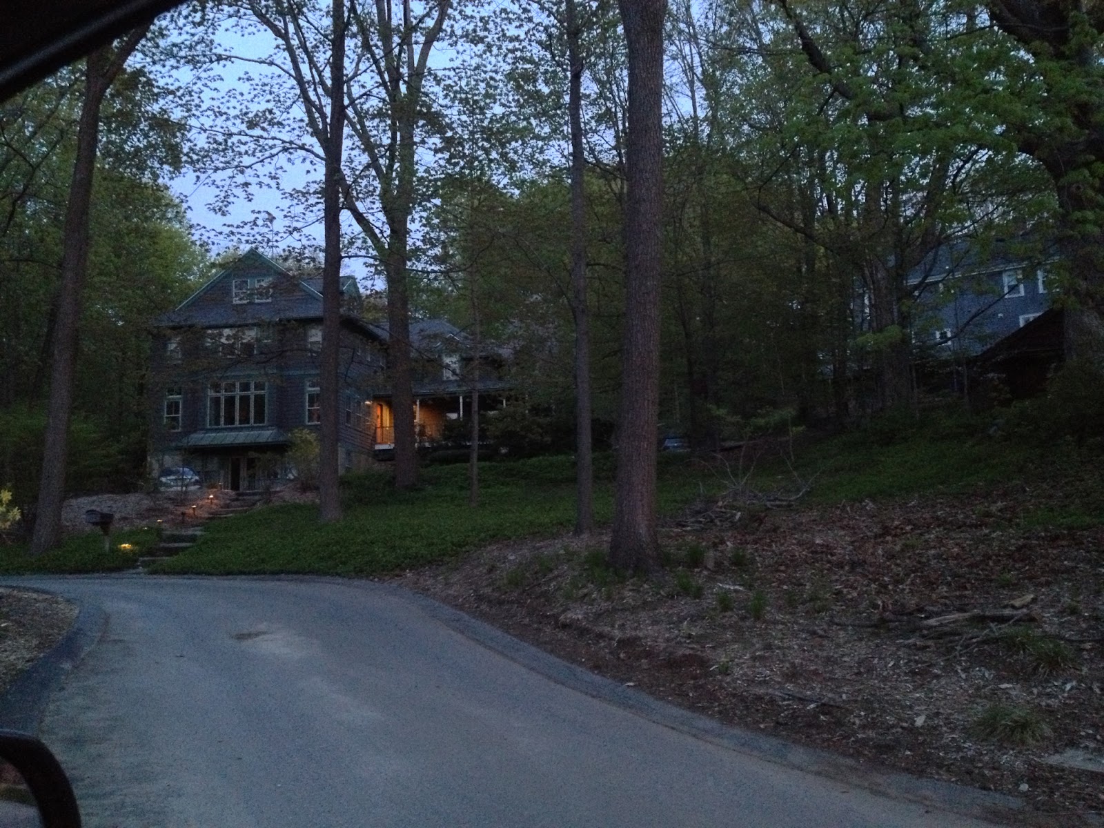 This is a shot of Barbara RD from the other end. To the left is where we just came from, and to the right is the winding drive that leads up to Norah and Jack's house. Straight ahead is James' house.