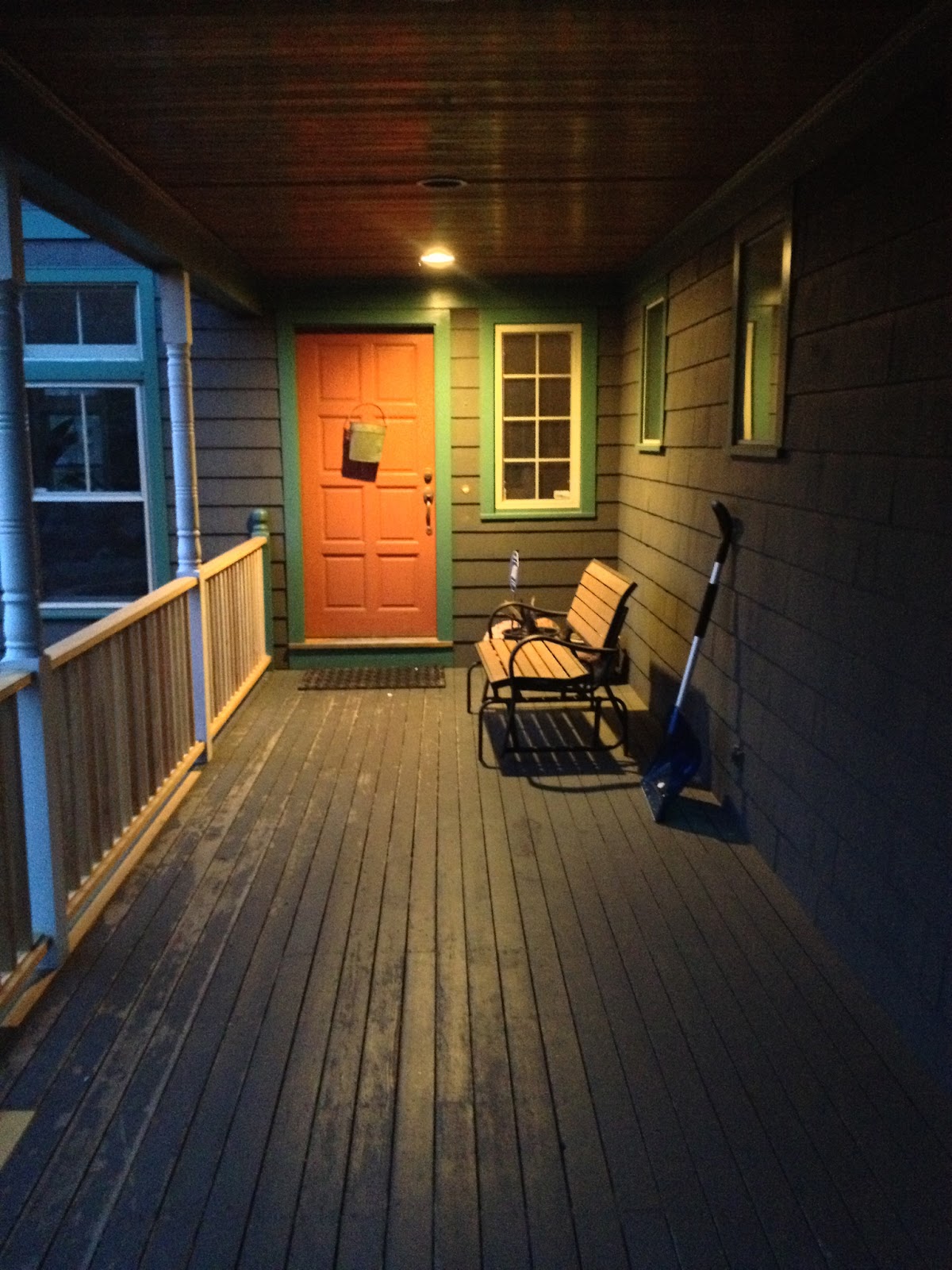 Here is the front porch. Imagine Norah and James approaching it cautiously, as the drive is lined with police cars, an ambulance, and a fire engine.