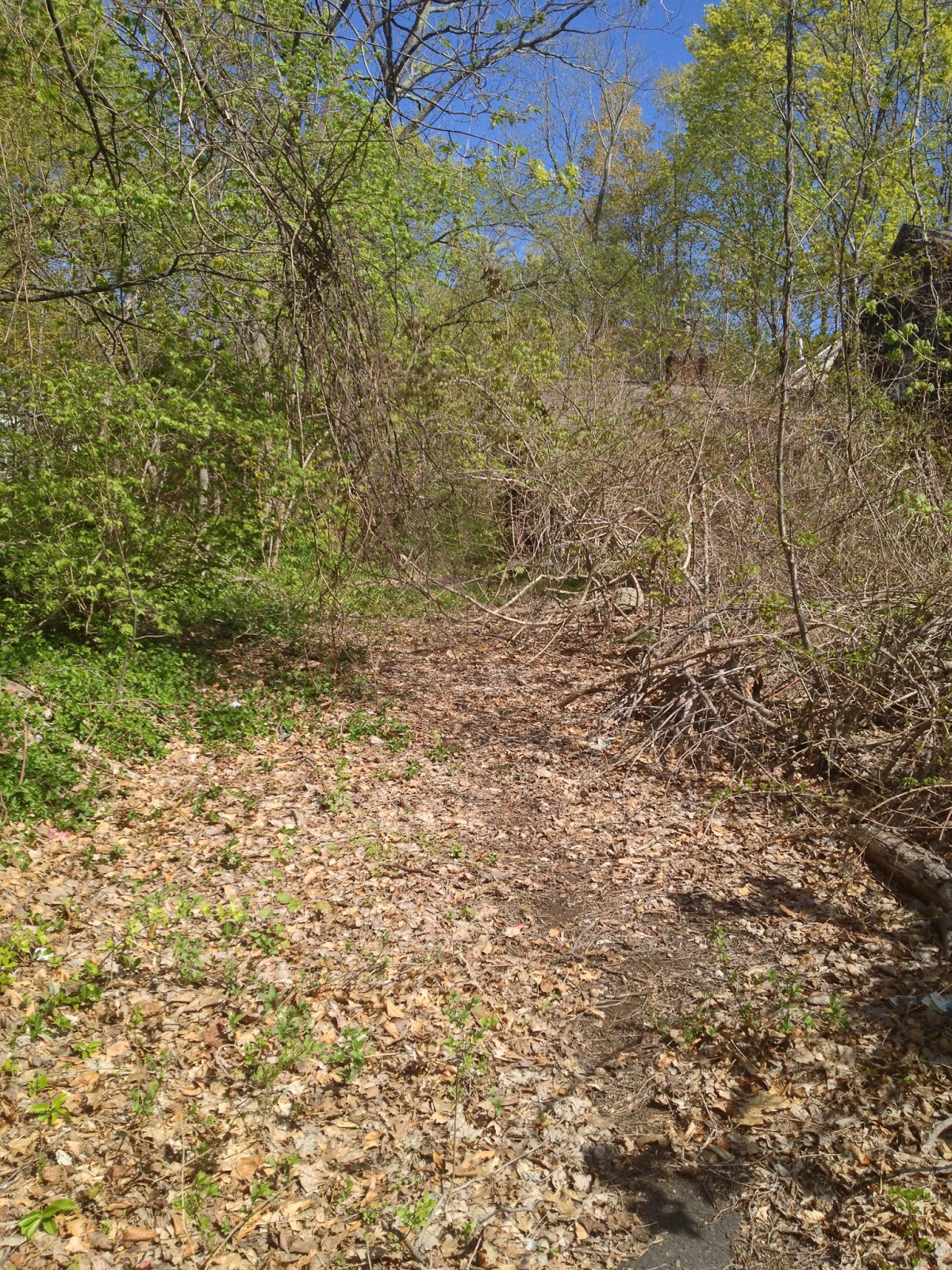 She then booked it up this hill. As you can see, there are a lot of tangled vines and underbrush to get caught on, as well as thickets to hide in. This hill is also pretty steep.