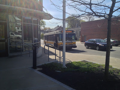 This is the but station where Norah gets dropped off, and James picks her up. Oh look! There's even a silver car parked across the street, just like James' would've been.