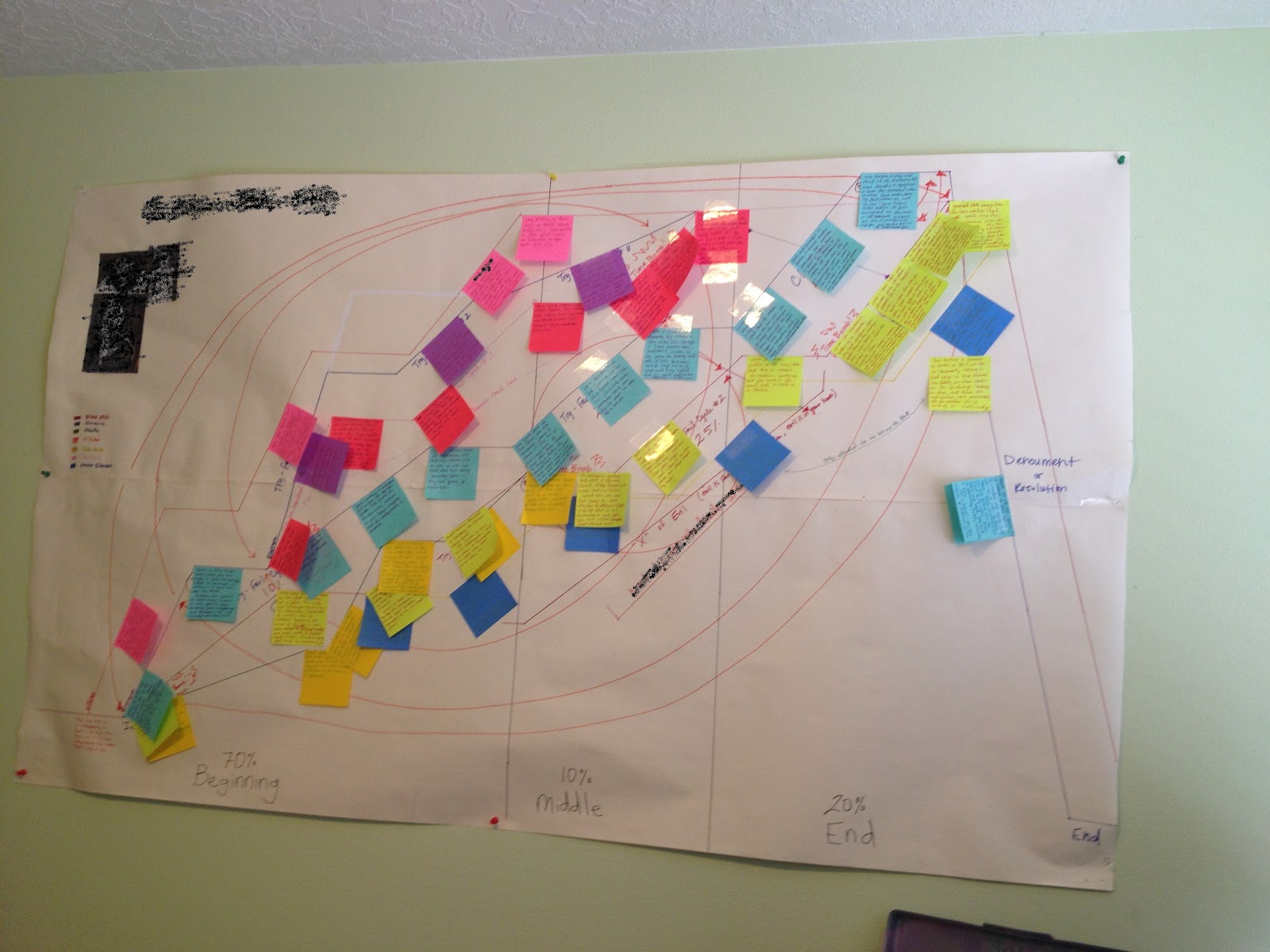 Just in case you didn't get a good look at my story map in the video, here is a picture. And just in case you're wondering, yes, my office walls are really that hideous Pistacio green. Don't worry, I'm working on changing that.