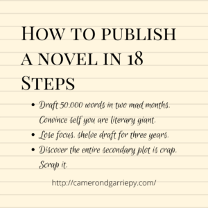 Draft 50,000 words in two mad months. Convince self you are literary giant.