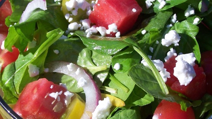 Finicky Friday - Watermelon and Feta Salad with Arugula and Spinach