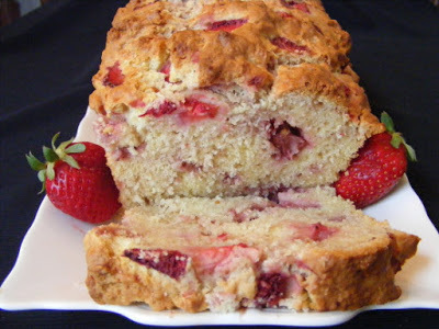 In separate bowl, mix flour, baking powder, baking soda and salt. Blend flour mixture with butter mixture just until blended. Add half 'n half and only stir just to blend -- do not overstir!Drain strawberries and blot dry. Carefully just fold in strawberries and nuts. Dough mixture will be thick.