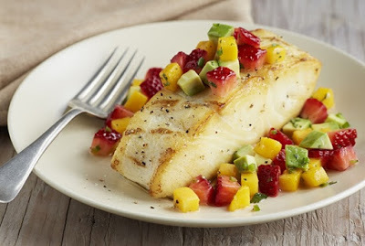 Finicky Friday - Grilled Halibut with Strawberry-Mango Salsa
