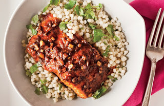 MOROCCAN SPICED SALMONDidn't plan ahead? Fish cooks quickly, so it can be ready for lunch or dinner even when you don't get a head start. Salmon is brimming with omega-3 fats, the kind that tamp down inflammation and play a role in joint and muscle pain. Omega-3s also get kudos for helping reduce the risk of heart disease.