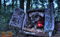 A tractor pulled up with a trailer behind it. There was hay scattered on the floor of the trailer, but there were seats instead of random hay bales passengers sat on. The driver counted out fifteen people then waited as they climbed into the trailer. Once everybody was seated, the driver went over the rules. The main rule was staying in the trailer, especially when it was moving. Under no circumstances was anyone on the hayride supposed to get out of the trailer. The driver stressed that over and over. Somehow Travis found himself sitting between Red and Lewis. After the driver finished covering the rules, they were off. The darkness immediately swallowed them up. They weren’t moving very fast, but the trailer groaned and squeaked as they made their way down the dirt road. The smell of a bonfire reached him first as they rattled along. Maybe it was him, but the woods on either side of the road seemed creepier than normal. Then he heard the moans. Oh God. His stomach tightened, and he grabbed the edge of the seat. Between one moment in the next, Red unclenched his fingers from the bench and held his hand. The warmth of Red’s hand surprised him. It was a cool night, after all. The trailer grinding to a halt quickly dragged his attention away from Red. On the side of the road sat one of those old, square business-type vans that was used to transport either the mentally ill or prisoners. It looked like it had caught fire at one point. The entire back of the burned-out van was an awful grayish white. Red squeezed his hand then suddenly the van’s doors burst open. Inside was a partially decomposed zombie in a straitjacket who wailed and moaned.