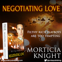 Twitter: http://www.twitter.com/morticiaknight Facebook: https://www.facebook.com/authormorticiaknightGoodreads Link: https://www.goodreads.com/book/show/26256076-negotiating-lovePublisher: Pride PublishingCover Artist: Posh Gosh