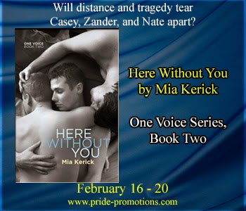 Hi!! Thank you, Decadent Delights, for welcoming me as a guest poster on your blog today! I hope many of your readers check out my One Voice Series: Casey, Nate, and Zander’s love story. Coming out February 16th, Here Without You is Book 2 in the series, second to Us Three.On with the interview…