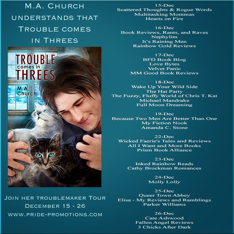 Trouble Comes in Threes will release from DsP on 12/26/14Pre-order link: http://www.dreamspinnerpress.com/store/product_info.php?products_id=5884