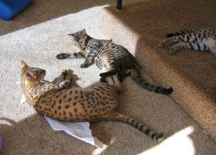 The cats in this series are house cats, but are larger than normal house cats. Think Savannah’s. I added this picture so you could see the difference between regular house cats and Savannah's. The werecats in this book are the size of the spotted ones. Pretty big huh?