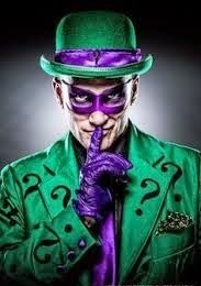 It was Halloween night, and I was dressed as the Riddler. Black question marks covered the emerald green coat. The hat was green, with a swatch of purple. My shirt and pants were black. Deep, vibrant purple gloves, mask, and tie finished off the outfit. “Hmm, nice. The purple goes good with your deep auburn hair and pale skin.”