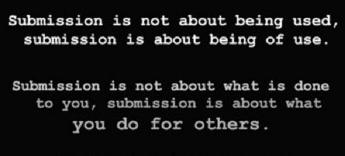 A submissive is a person who makes a conscious choice to give up some or all control of their life to another person—a Dominant or a Top. Dominance and submission is about a power exchange between two consenting adults. It is about the control within the dynamics of that relationship, whether it be a full time 24/7 relationship, or a casual meeting, or a part time arrangement.Choosing to be submissive means to allow someone else to control your body and behavior within the preset limits you and that particular person, i.e. the Dominant, have agreed upon. Submission is not a sign of weakness;